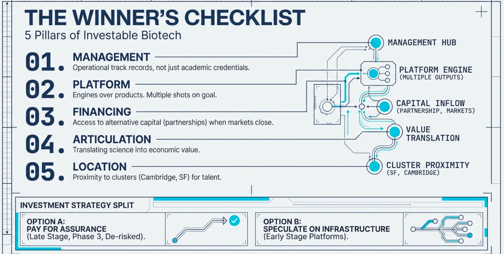 Don’t invest in biotech without understanding the infrastructure. This isn’t an industry you can analyze through traditional valuation metrics. Understanding the machinery (R&D process, regulatory pathways, manufacturing challenges, partnership economics) is non-negotiable.