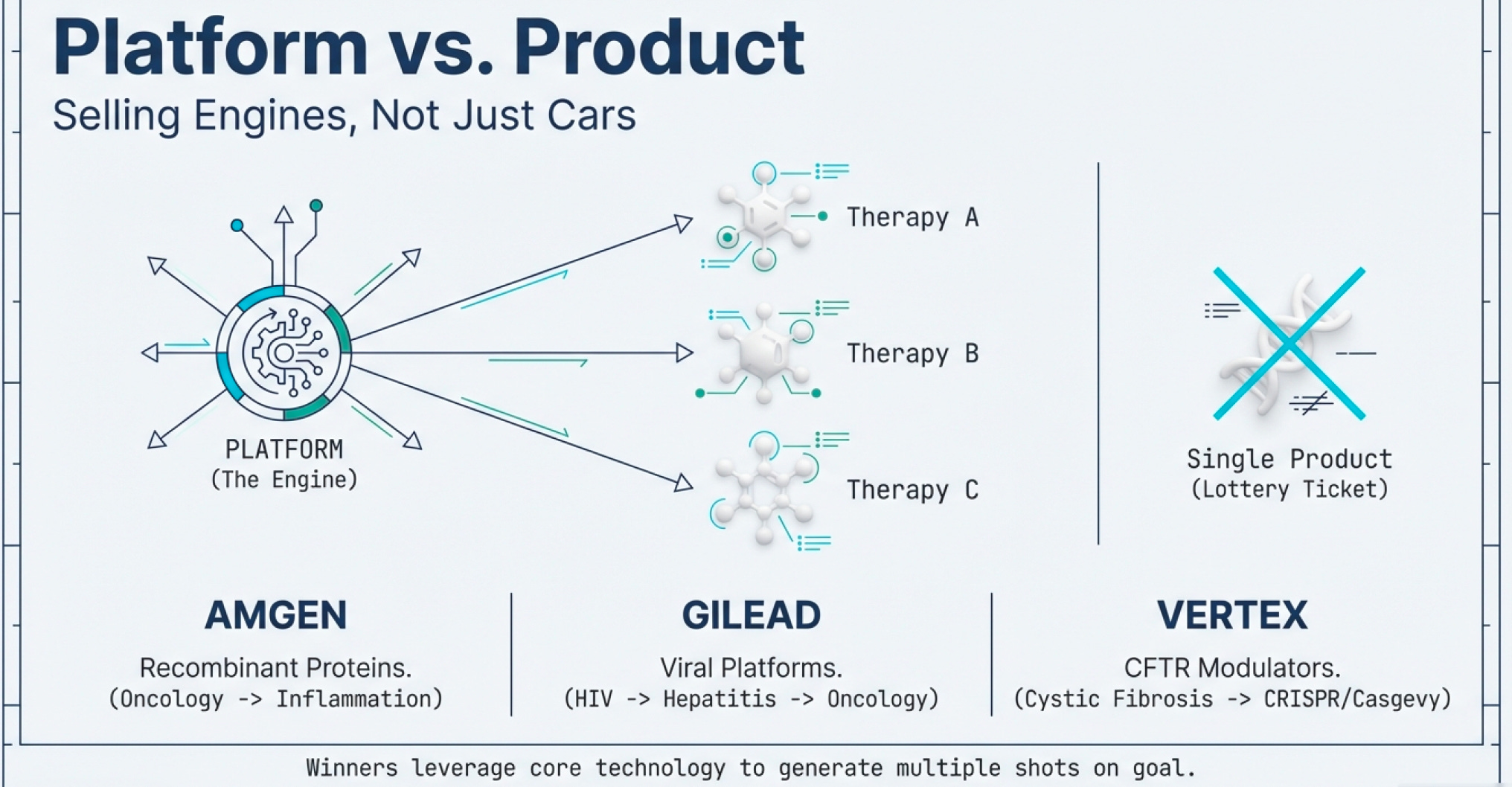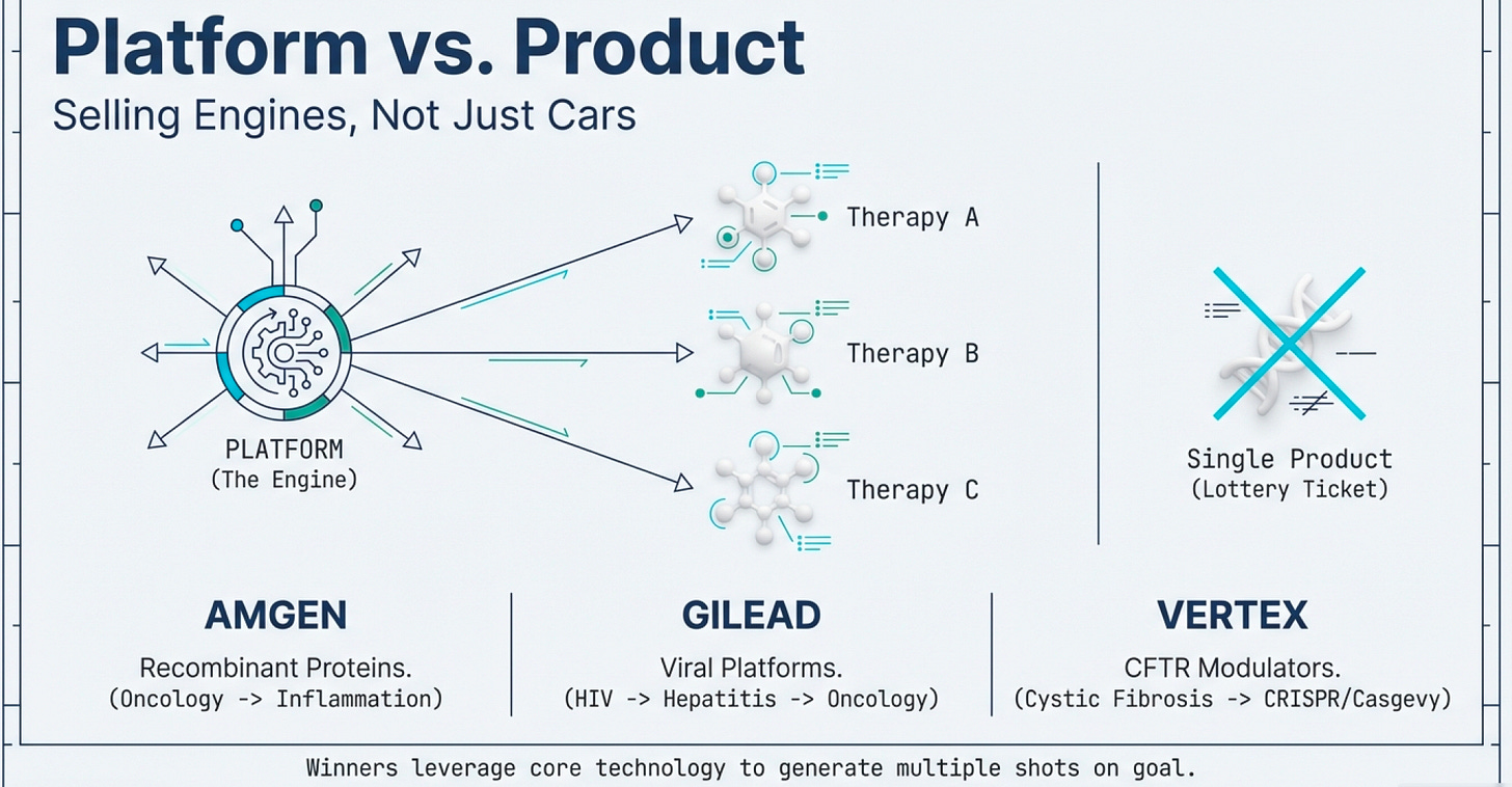 The key insight: great biotech companies don’t sell products; they sell platforms.
