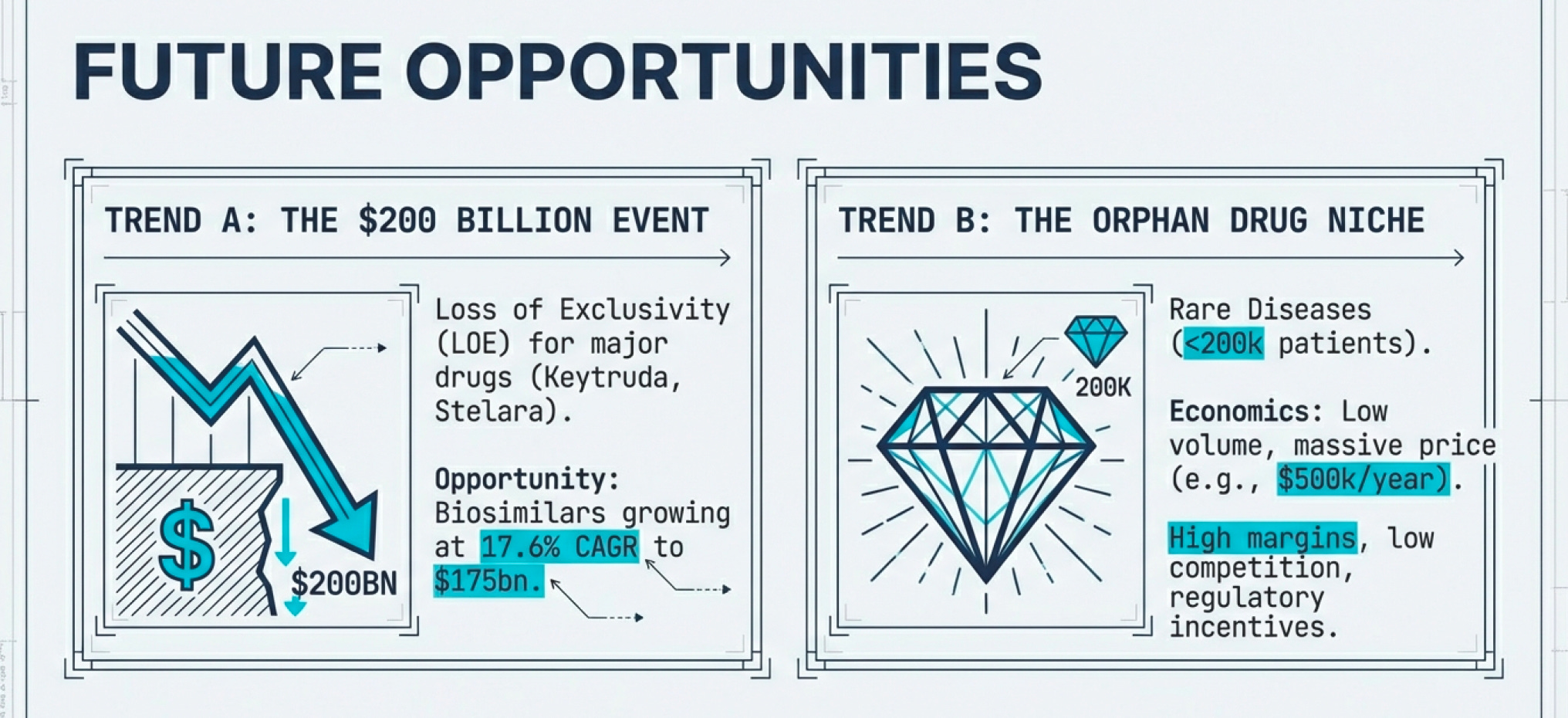 Here’s what makes the next decade fascinating: over the next ten years, approximately $200 billion in revenues across 150 biologic molecules will face loss of exclusivity.