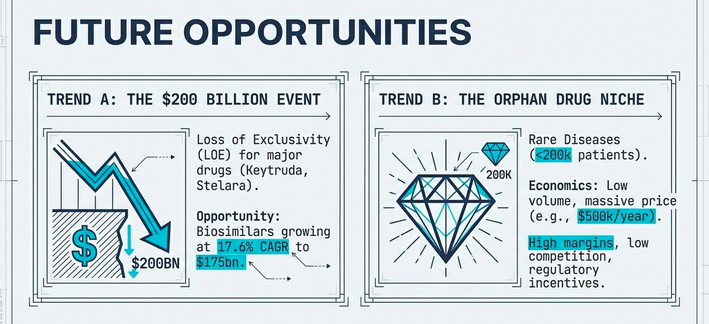 The prize is enormous: When biologics represent 51% of drug spending from just 5% of prescriptions, even modest market share gains generate billions in revenue