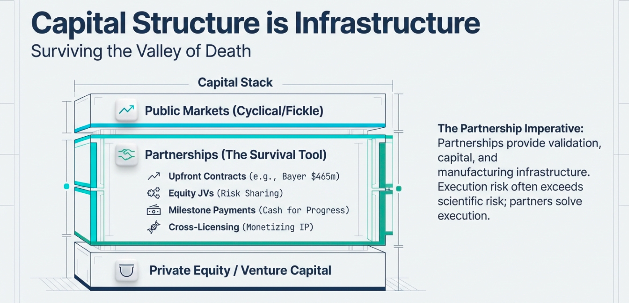 Here’s the business reality: biotech companies partner aggressively because (1) they need to survive the sector’s brutal burn rate, and (2) they need to validate demand for public market investors who can’t evaluate the science.