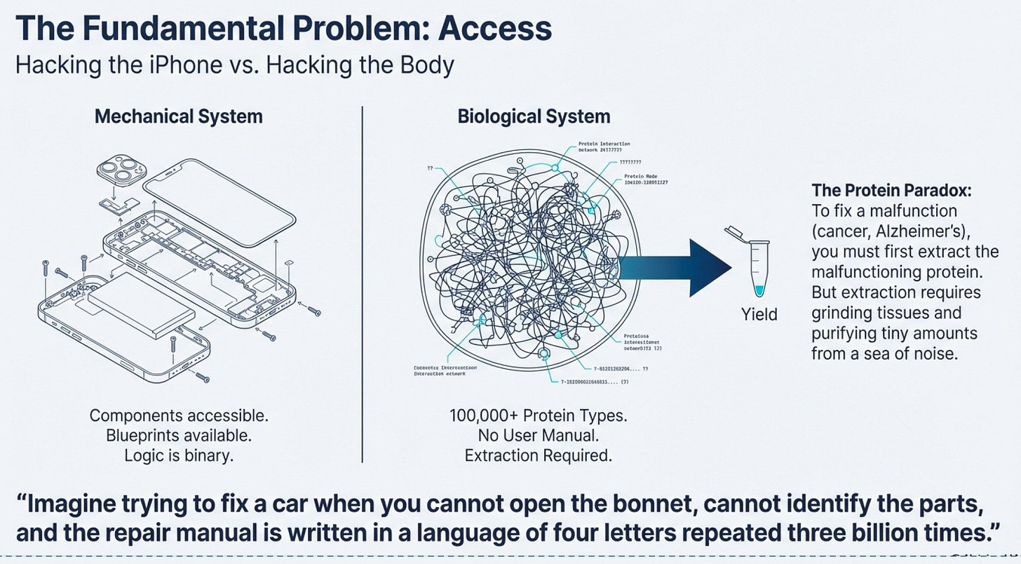 Part I: The Fundamental Problem — Why Your Body is Harder to Hack Than Your iPhone