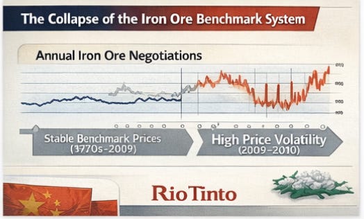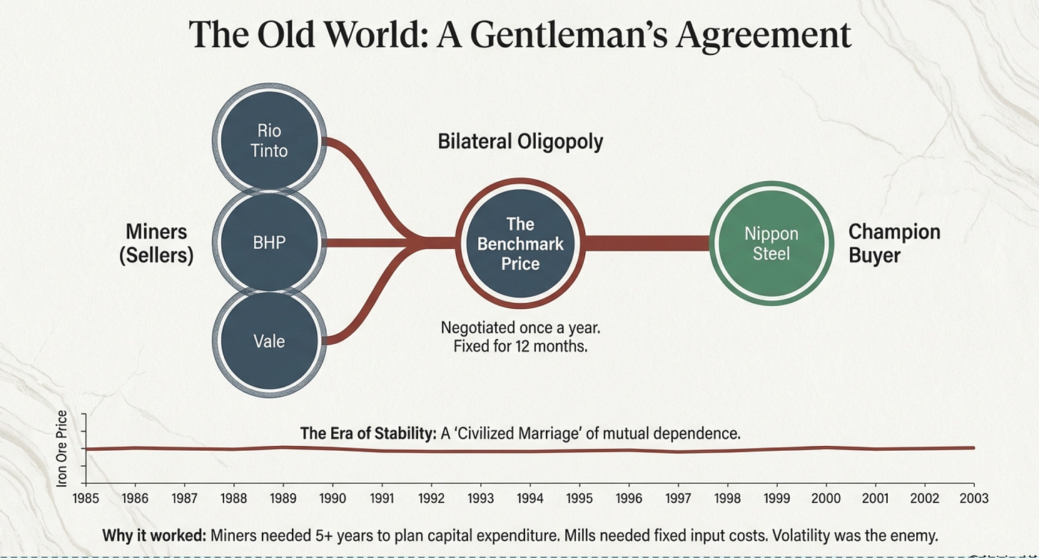 Because both sides needed stability. Steel mills need to know their input costs to plan production and price contracts. Mining companies need to justify investments in projects that take five years minimum to build and decades to pay off. Violently fluctuating prices help nobody except speculators, and neither steel mills nor miners wanted to hand their economic fate to traders with Excel spreadsheets.