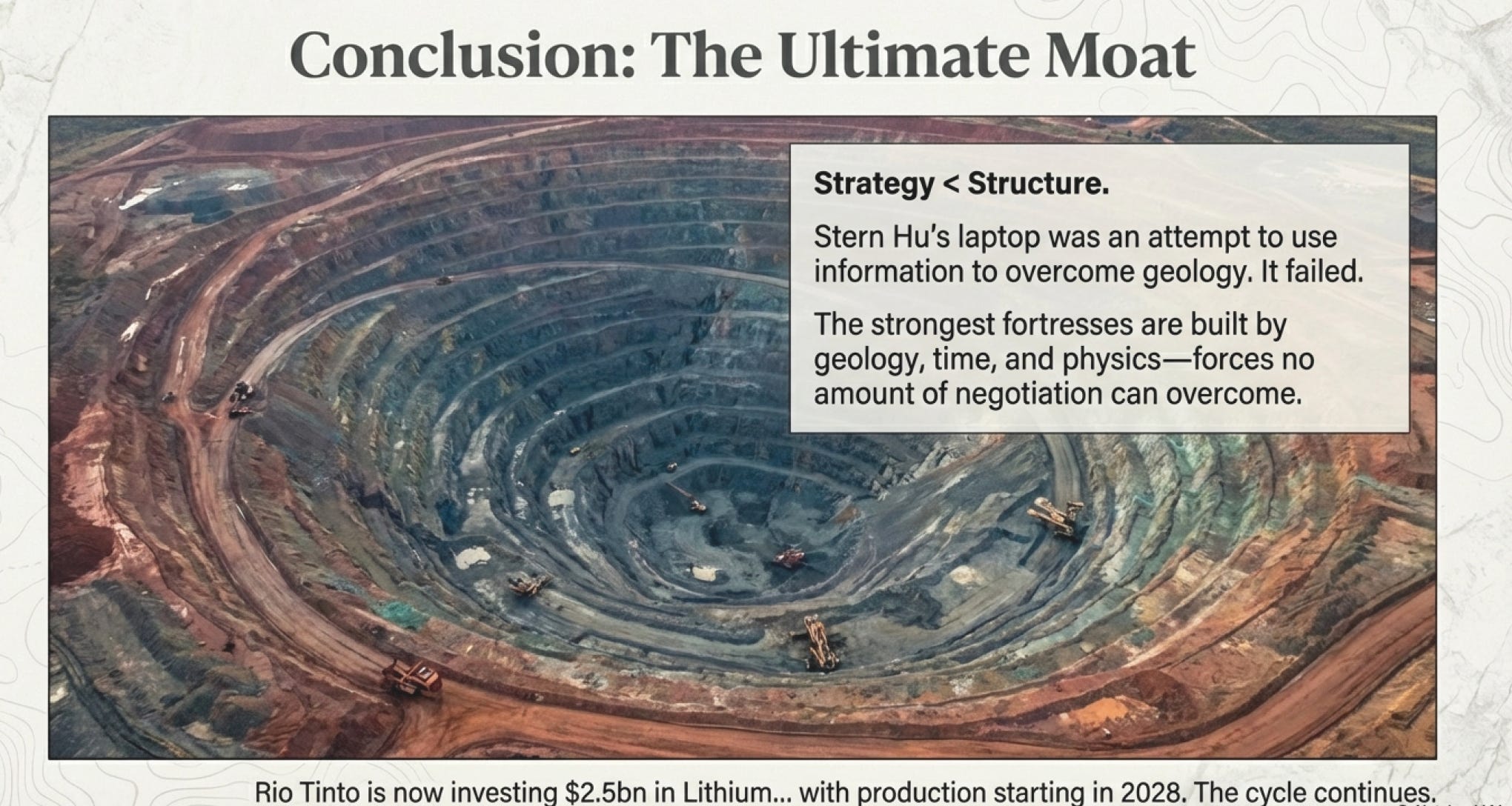 China wanted pricing power. But pricing power flows from market structure, not from desire. Three miners controlling 70% of supply will always have more power than 700 mills controlling 30% of demand, no matter how many times you arrest the negotiators.