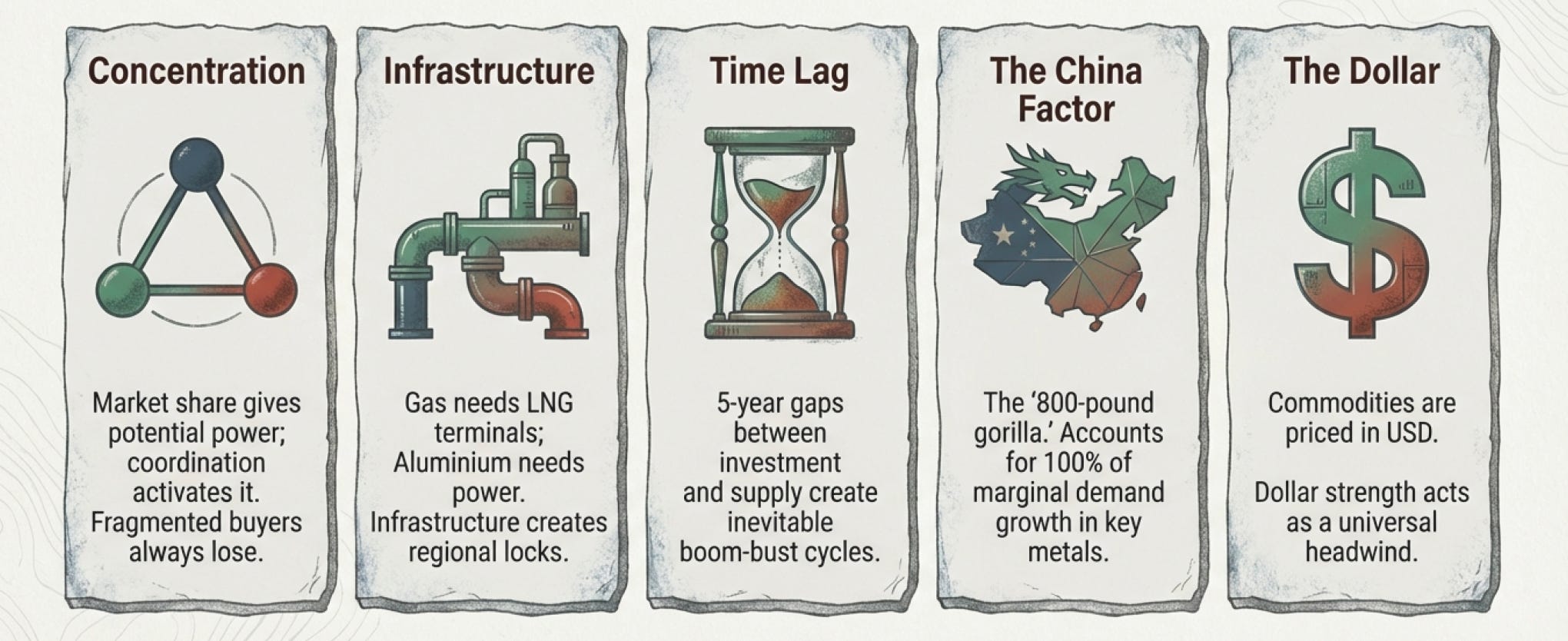 In commodity markets, the strongest fortresses are the ones built by geology, time, and the fundamental physics of supply that no amount of information, coordination, or negotiating skill can overcome.