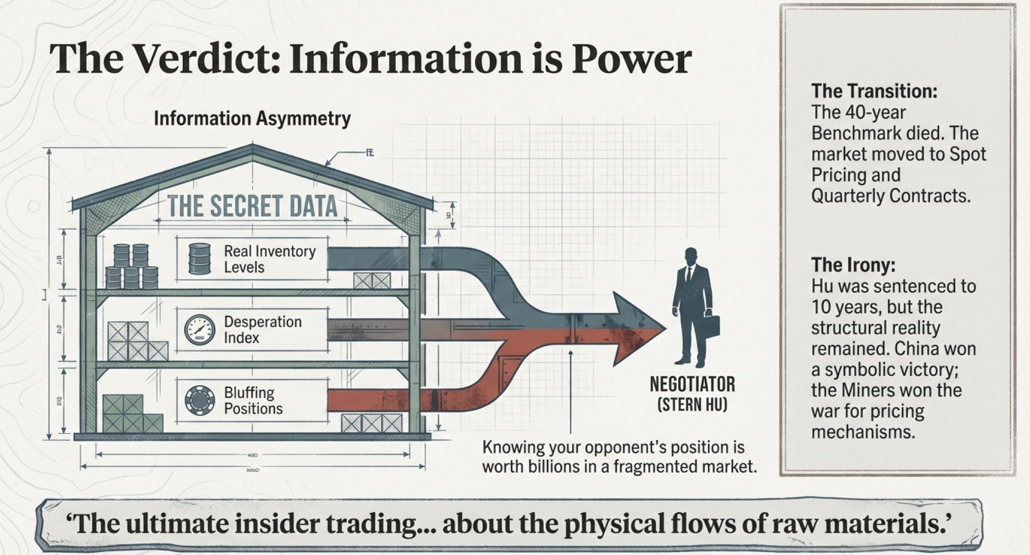 The arrest, the trial, the 10-year prison sentence—these weren’t just about punishing one negotiator for alleged bribery. They were about China attempting to impose order on a market structure that economics had already determined.